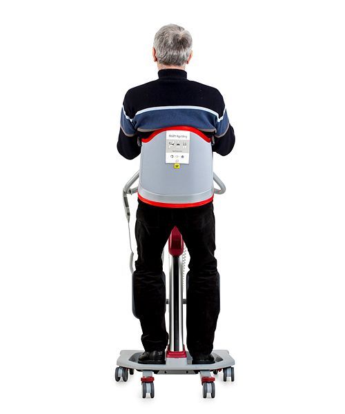 The RgoSling Active is quickly and easily placed around the user. It has an efficient anti-slip lining to prevent the sling from sliding up the user during transfer. The wide back support distributes weight and pressure evenly over a large surface, which makes it more comfortable for the user. The waist belt provides additional support and stability. The sliding loops self-adjust to the size of the user and provide additional grip and support around the hips when standing.