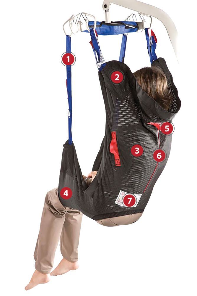 - The front cross-over loops helps to hold the person in the sling offering less sheering and prevents sliding during transfers