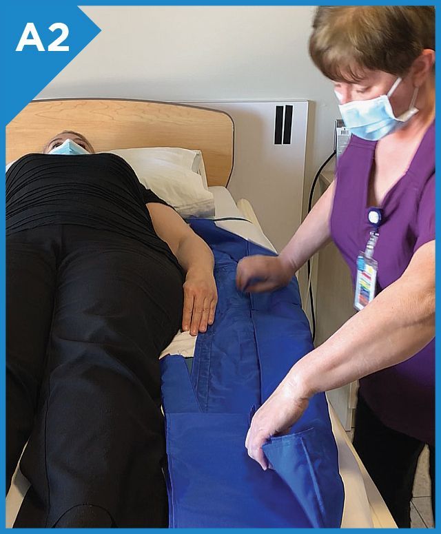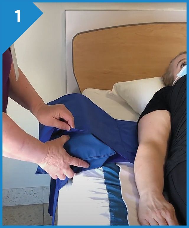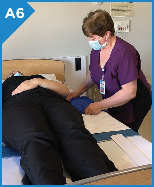 Place the square foam (stopper) in the opening on the side that you would like to turn the patient.
