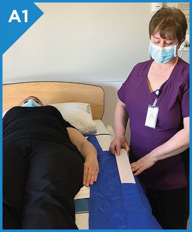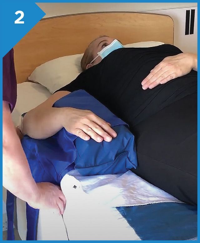 To facilitate the movement, ask the patient to turn their head towards the side they will be turned and cross one leg over the other.