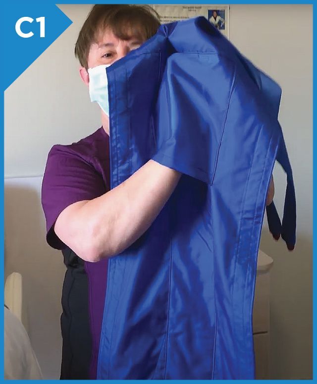 Position the carry bar parallel to the patient’s body, then attach the 2 straps that are on the opposite side of the stopper.