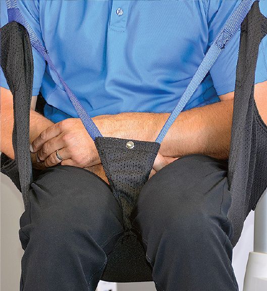 - Integrated side pockets to fold in the support straps to prevent damage to the sling while in a wheelchair or during washing