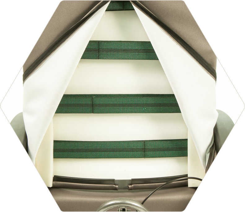 The elastic bands incorporated in the backrest provide comfort rarely offered for this type of chairs. The Harmony model is ideal for long treatments or long-term care.