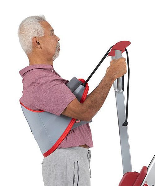 The Active lifting arm (4-point sling bar) and the RgoSling Active provides extra support when hoisting from sit to stand.