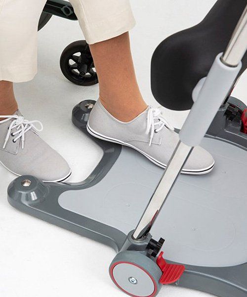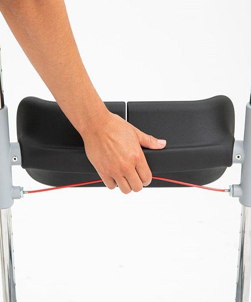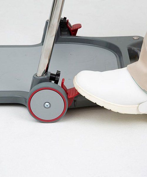 With a gentle one-hand grip, the leg support is easily adjusted. The central braking mechanism can be controlled from a standing position, rather than kneeling. The leg support has soft and hygienic padding with lateral support and divided pads.