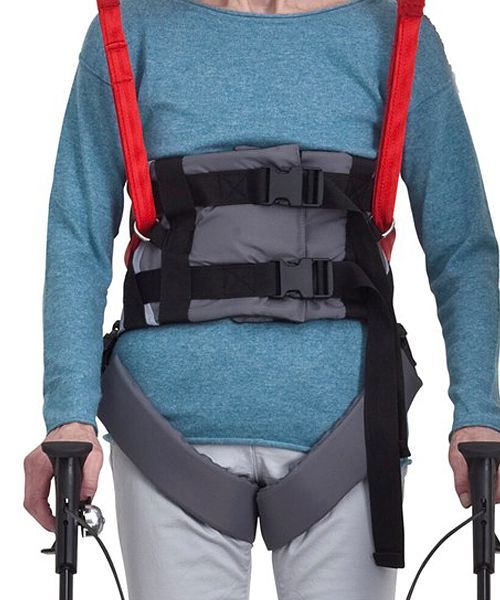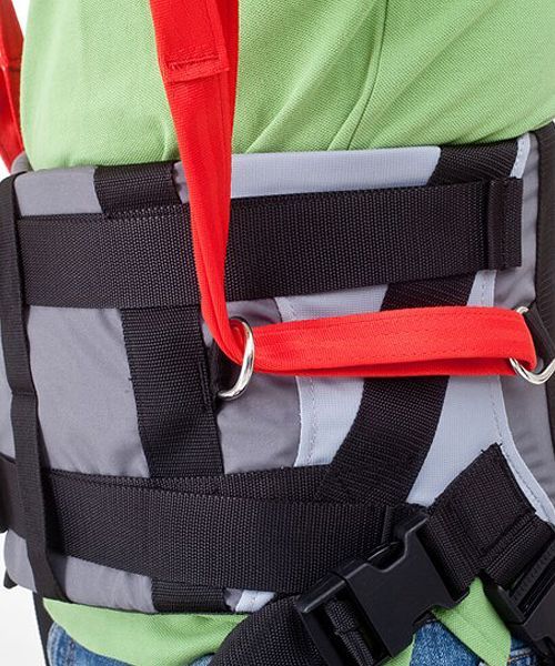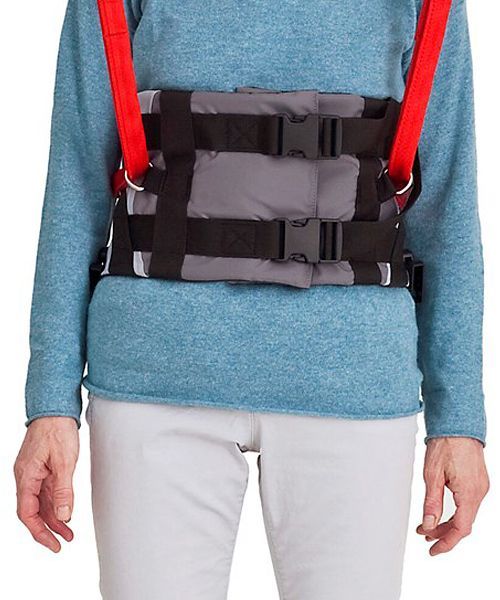 Ambulating Vest with double buckle system distributes pressure over a larger surface.