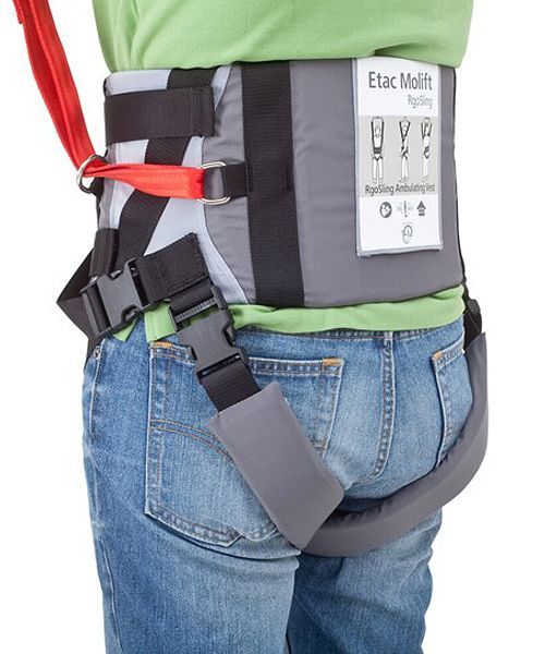 Molift RgoSling Ambulating Vest has adopted features from professional climbing equipment to provide the best possible comfort and safety for the user. The self-tightening suspension loops prevent users from slipping or falling down.The front buckle system provides increased possibilities for the user to more independently perform gait training or toileting, maybe even without assistance.