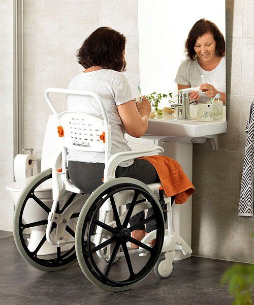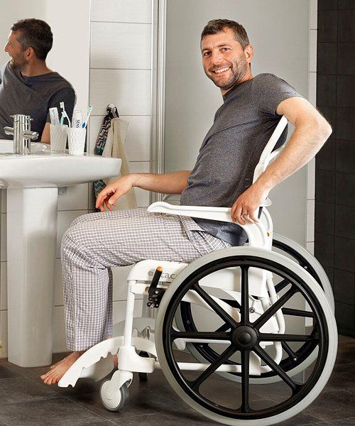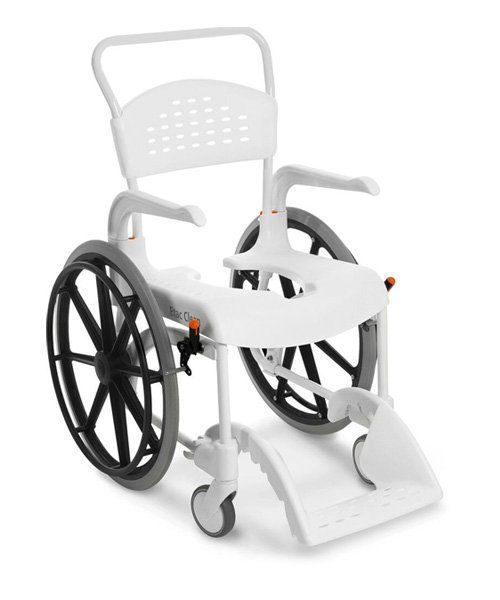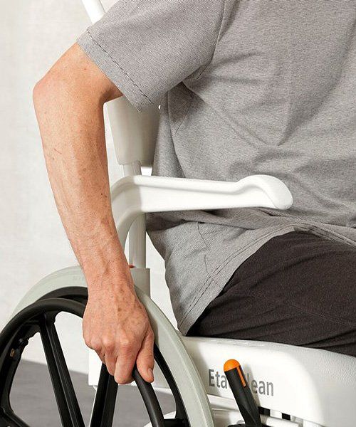 Etac Clean 24” self propelled shower commode chair has the same basic benefits as the other members of the Clean family – but allows the user to operate the chair independently.
