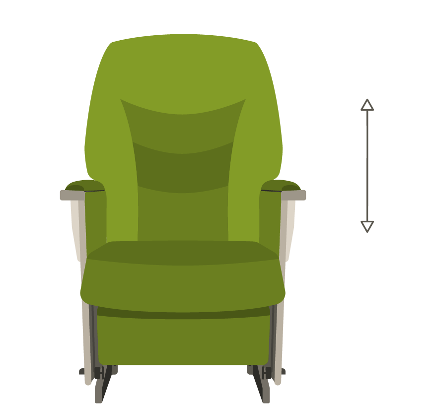 Equipped with a mechanism built into the backrest, the Thera-Glide® Wood locks automatically at the first sign of the user’s intent on getting up and allows rocking when fully seated.