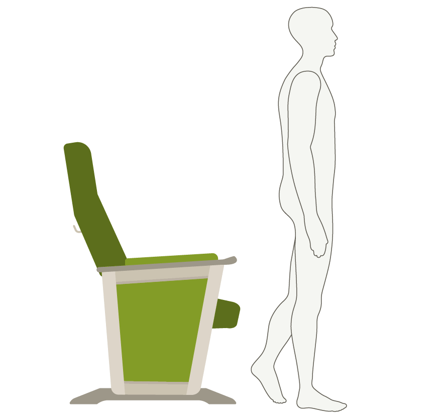 Available in different widths, it’s also height-adjustable. It is also possible to adjust the seat depth and the angle of the backrest for optimal positioning.
